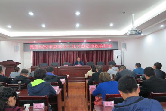 10月13日上午, 民盟雅安市委在上坝路会议室举行“喜迎十九大”盟员事迹宣讲会。民盟市委专职副主委何海,基层组织骨干盟员、机关干部近40人参加了宣讲会。会议由何海主持。